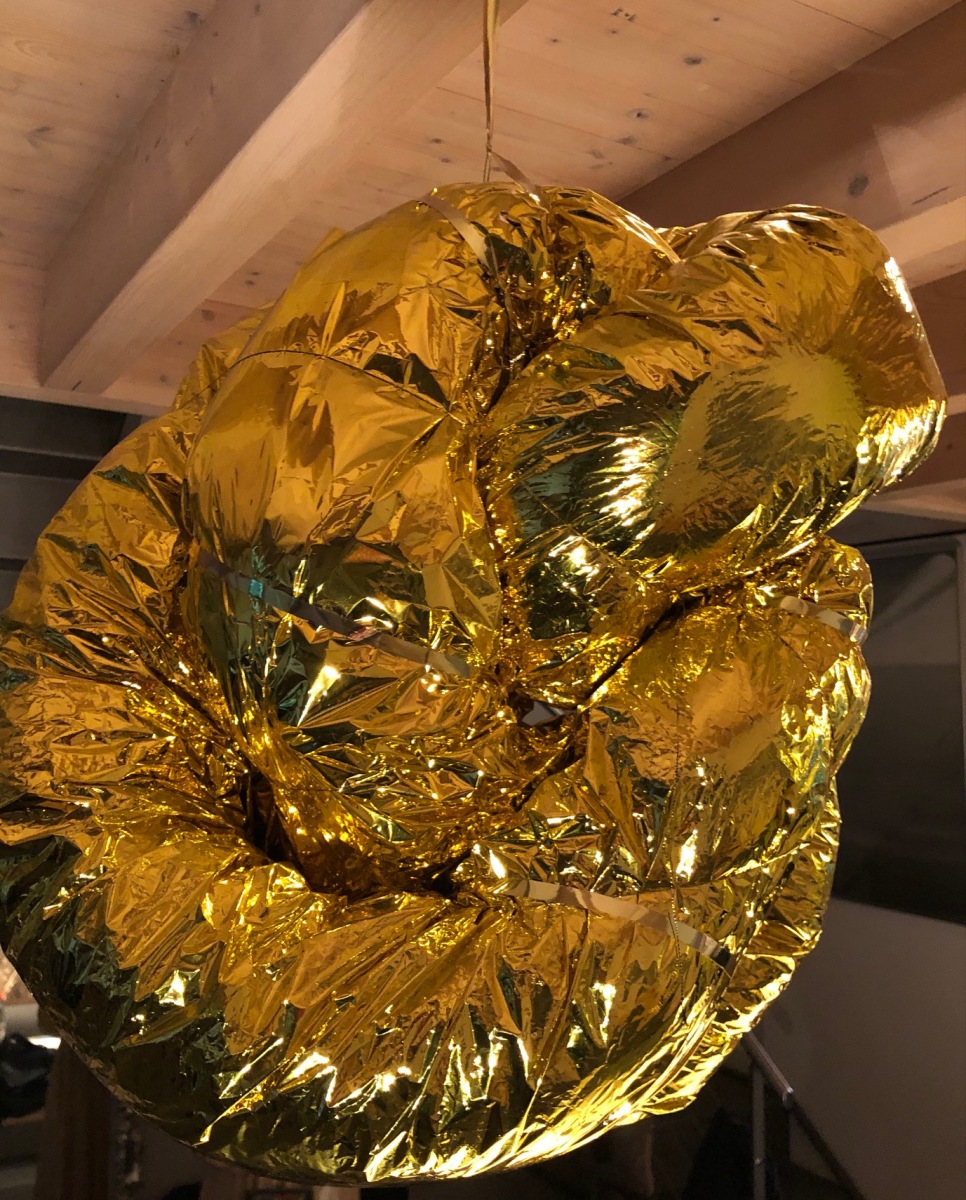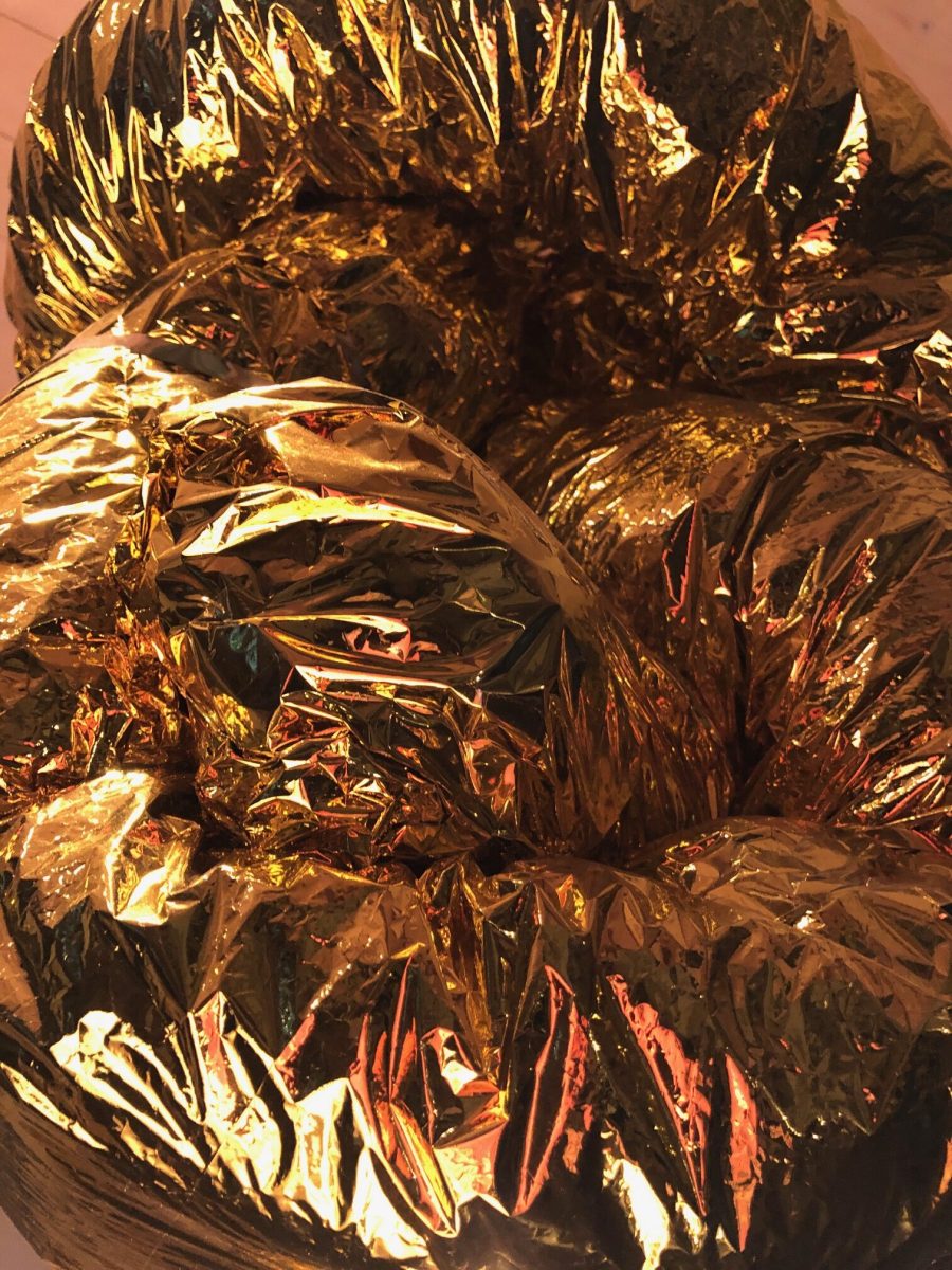 Abundance, 2022; 60×50 Rettungsfolie, Poliesterfaser