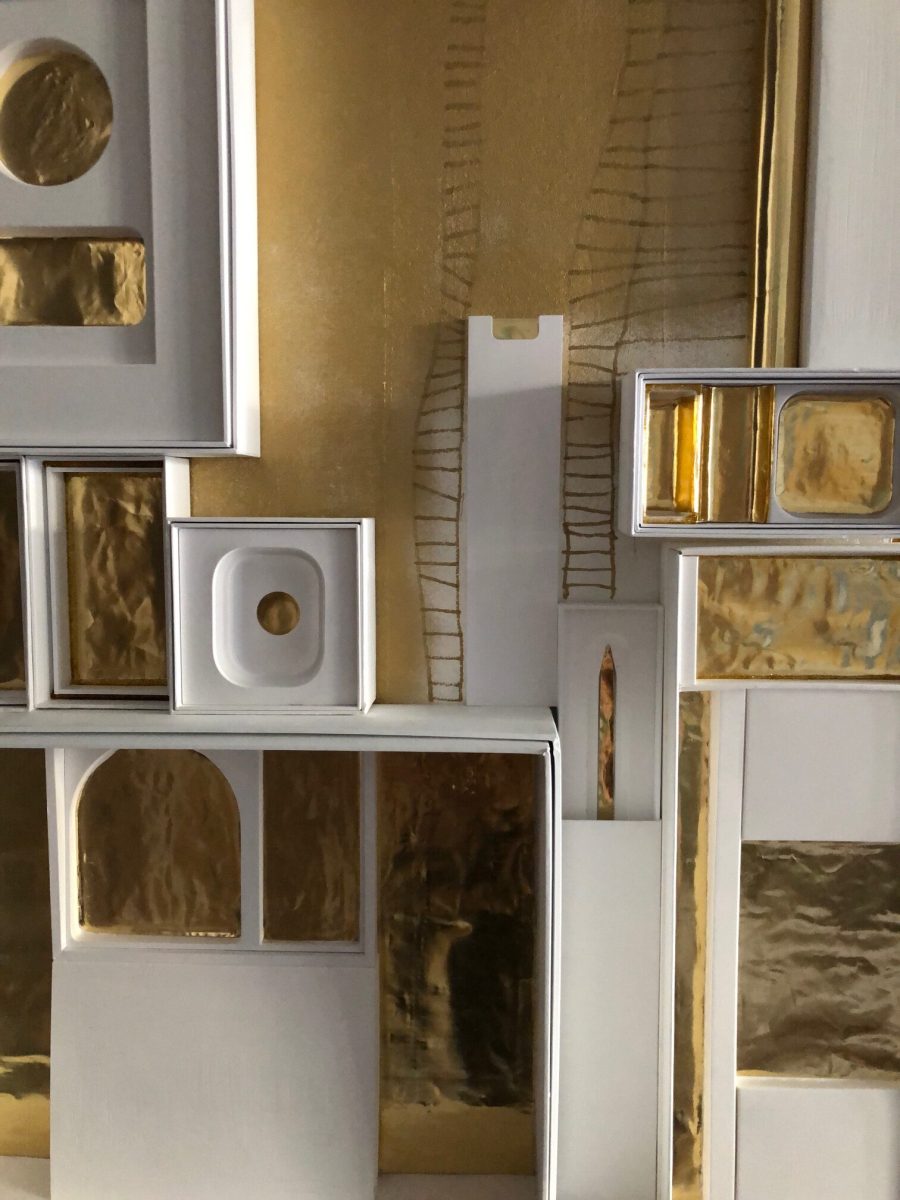 Himmlisches Jerusalem, 2023; 55×80 Verpackungsmaterial von Apple-Geräten, Folien, Filzstift