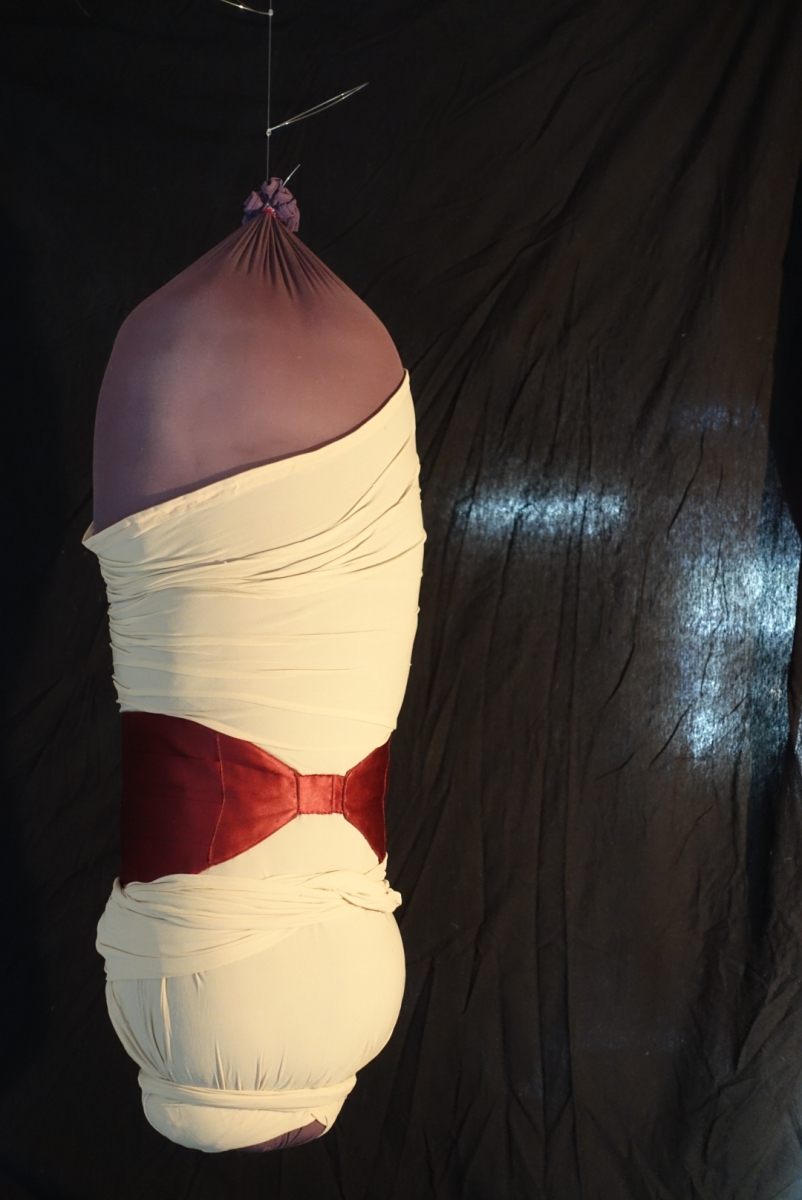 Aglaja, 2016; 35×70, Baumwolle/Baumwolltrikot, Nylonschnur, Polyesterfaser